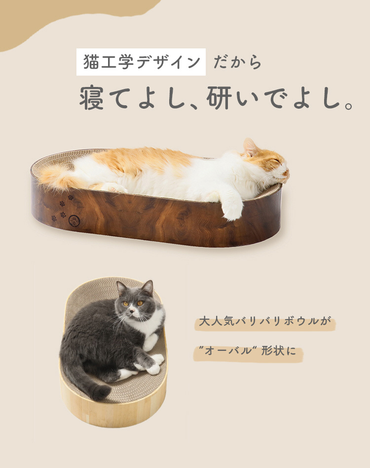 猫工学デザインだから、研いでよし!寝てよし!