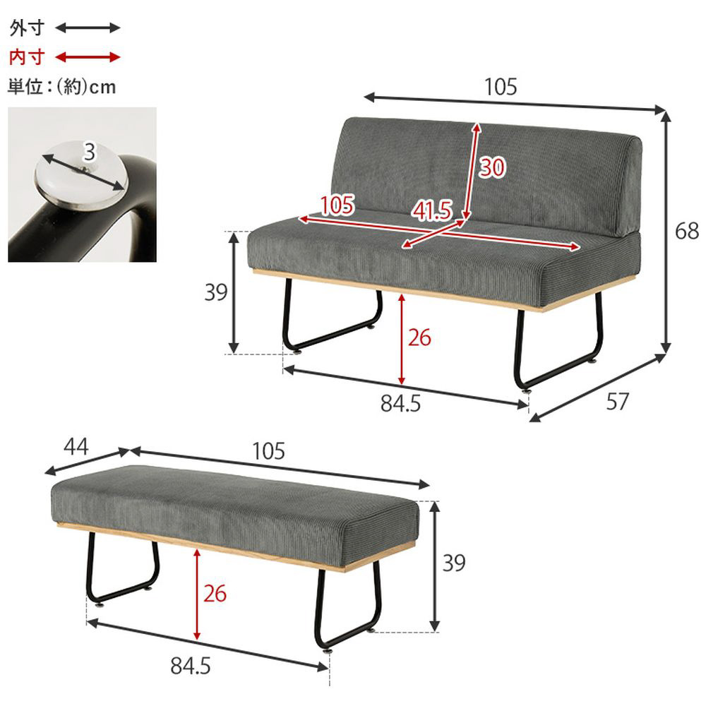 ダイニング3点セット テーブル:ナチュラル/ソファ:ダークグレー