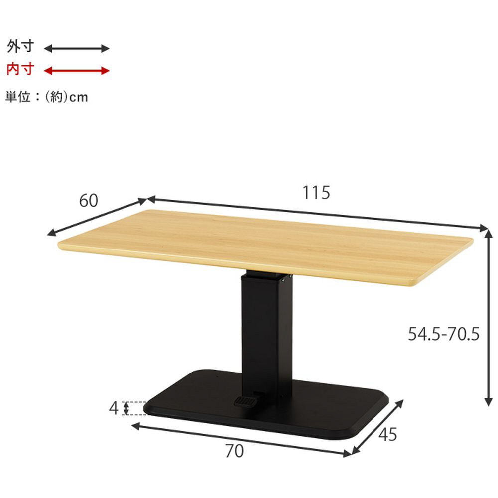 ・テーブル:W115×D60×H54.5-70.5cm(無段階昇降機能あり)