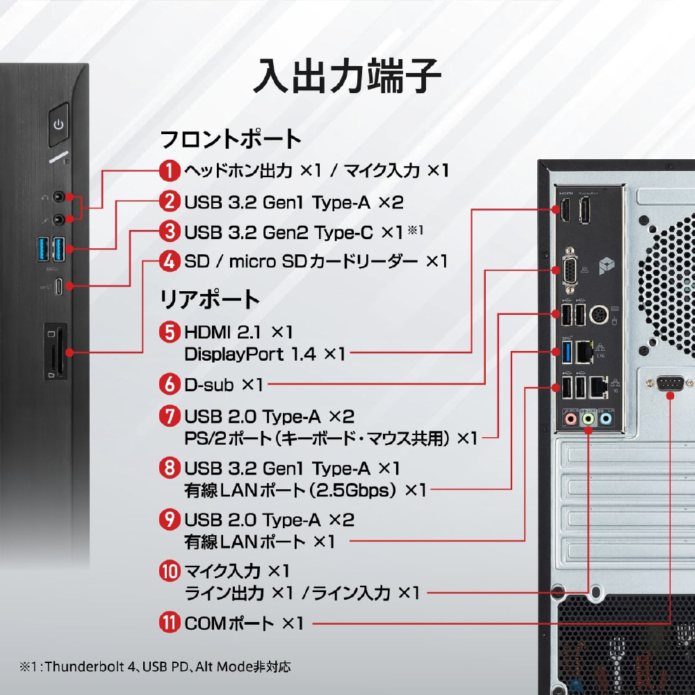 ミニタワー筐体に高性能なCPUや超高速なSSDパーツを搭載し、Windows 11 Proプリインストールでビジネスシーンにお勧めです。
