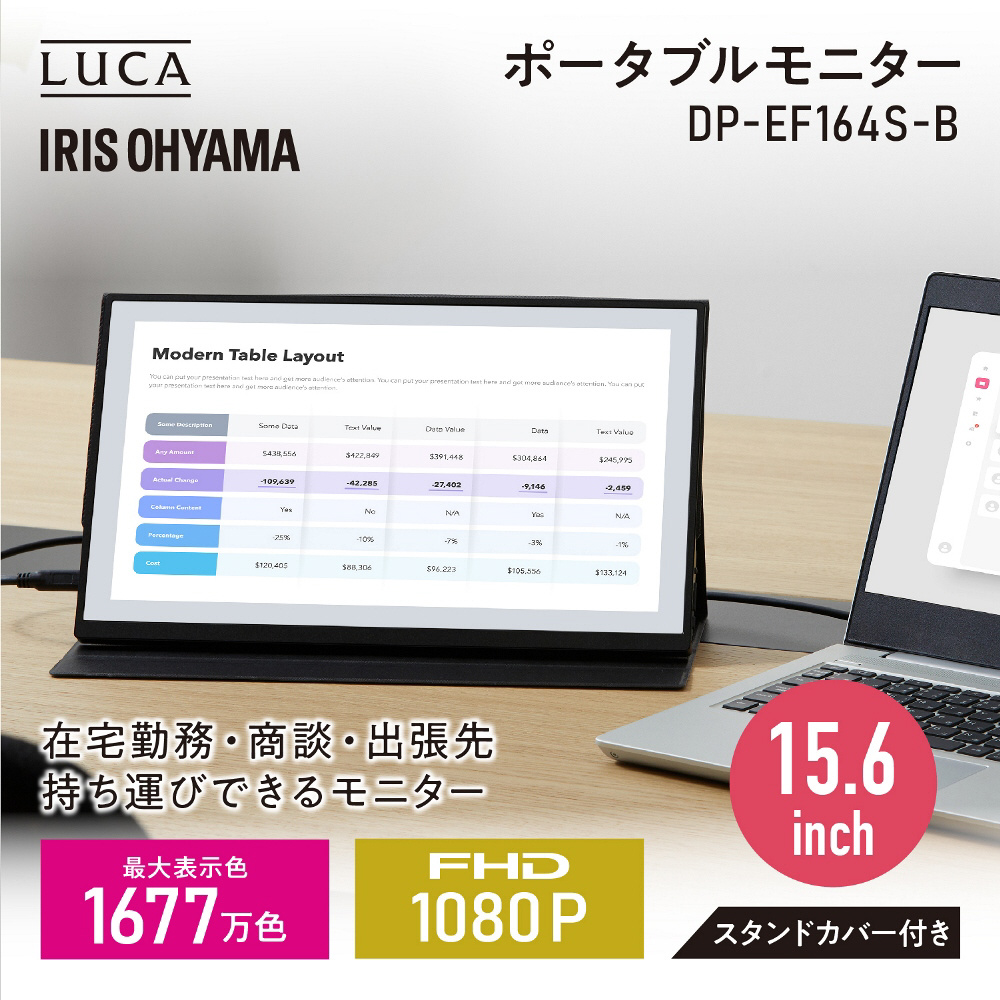 USB-C接続 モバイルモニター LUCA ブラック DP-EF164S-B [15.6型 /フルHD(1920×1080) /ワイド /60Hz]