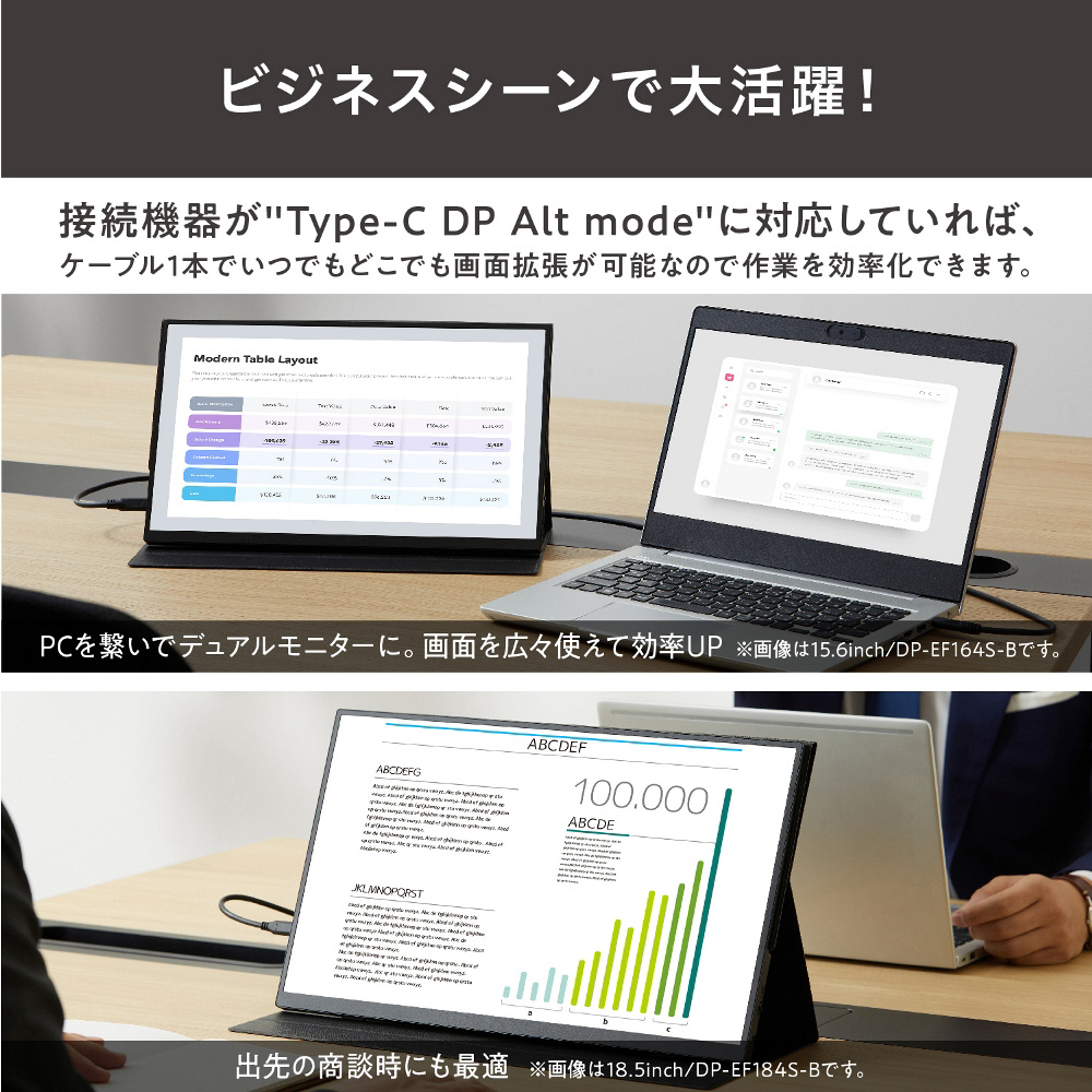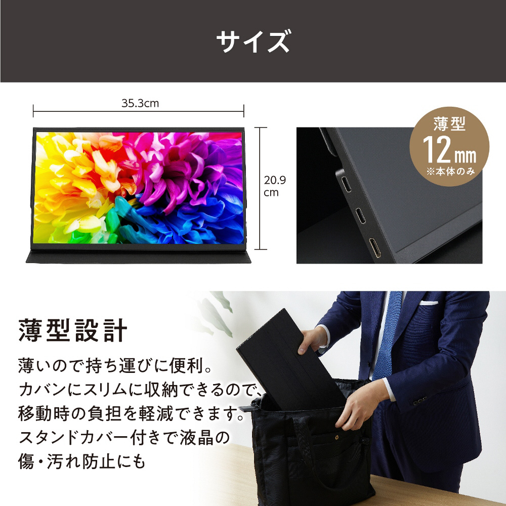 ビジネスシーンからプライベートまで、さまざまなシーンで活用できる薄型ポータブルモニター。