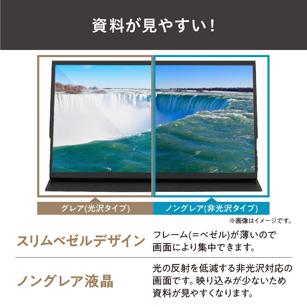 “15.6インチ”の大きな画面で細かい文字が見やすく、テレビ会議や在宅ワーク、セカンドディスプレイとしておすすめです。