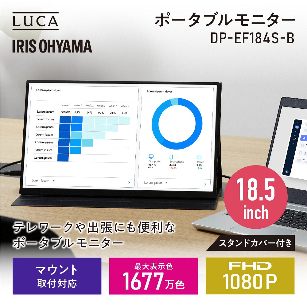 USB-C接続 モバイルモニター LUCA ブラック DP-EF184S-B [18.5型 /フルHD(1920×1080) /ワイド /60Hz]