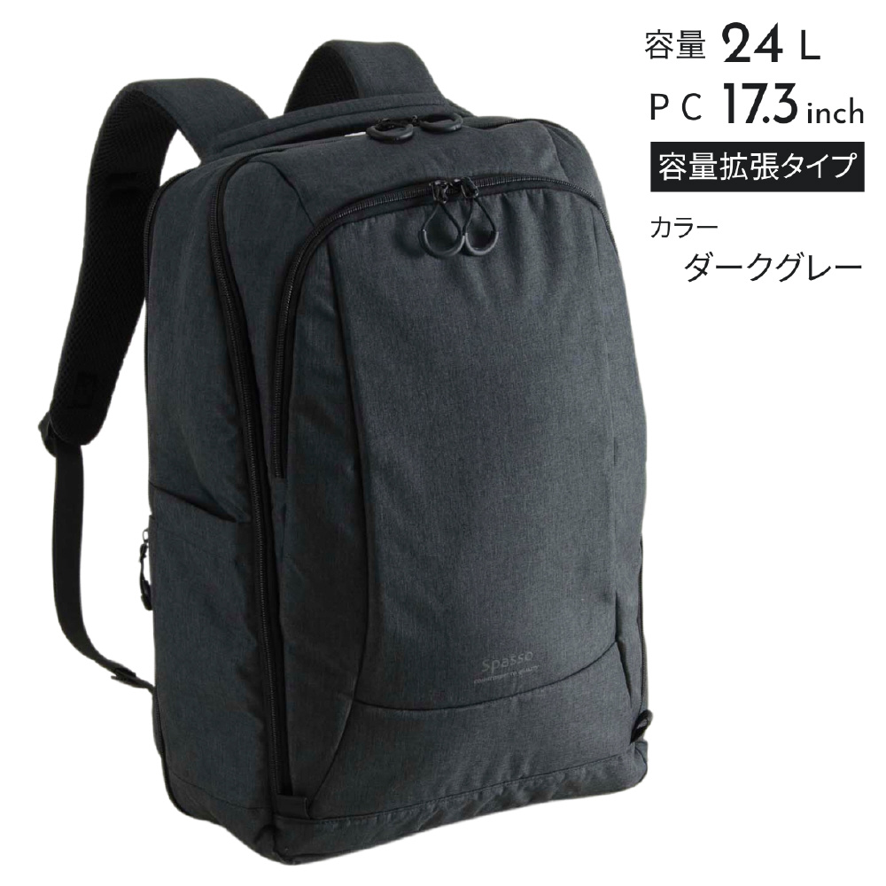 バックパック アウトドア 容量拡張タイプ 軽量+大容量リュック 【24L】 Spasso Travel ( スパッソ トラベル ) ダークグレー 1-560