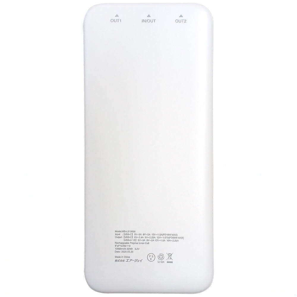 リン酸鉄モバイルバッテリー10000mAh WH MBLS10000WH