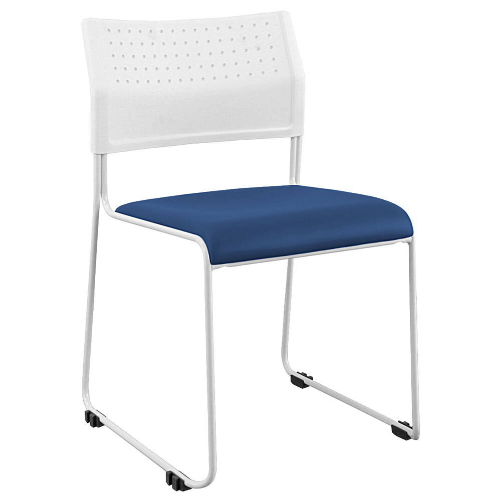清潔感と明るさを備えたホワイトフレームに全4色のカラフルなカラーを採用した、コストパフォーマンスの高いスタッキングチェア。