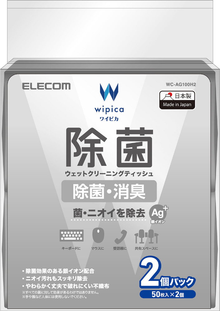 すぐれた除菌効果の“銀イオン”と天然の消臭成分“緑茶エキス”を配合した、除菌・消臭に最適なウェットクリーニングティッシュです。