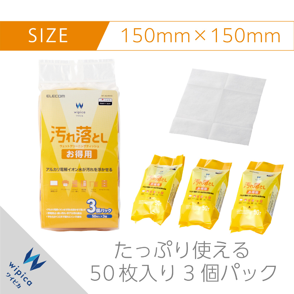 ウェットクリーニングティッシュ [150x150mm /50枚x3] 汚れ落としお徳用 WC-AL150H3