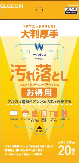 ウェットクリーニングティッシュ [300x200mm /20枚 /大判厚手タイプ] 汚れ落としお徳用 WC-AL20LH