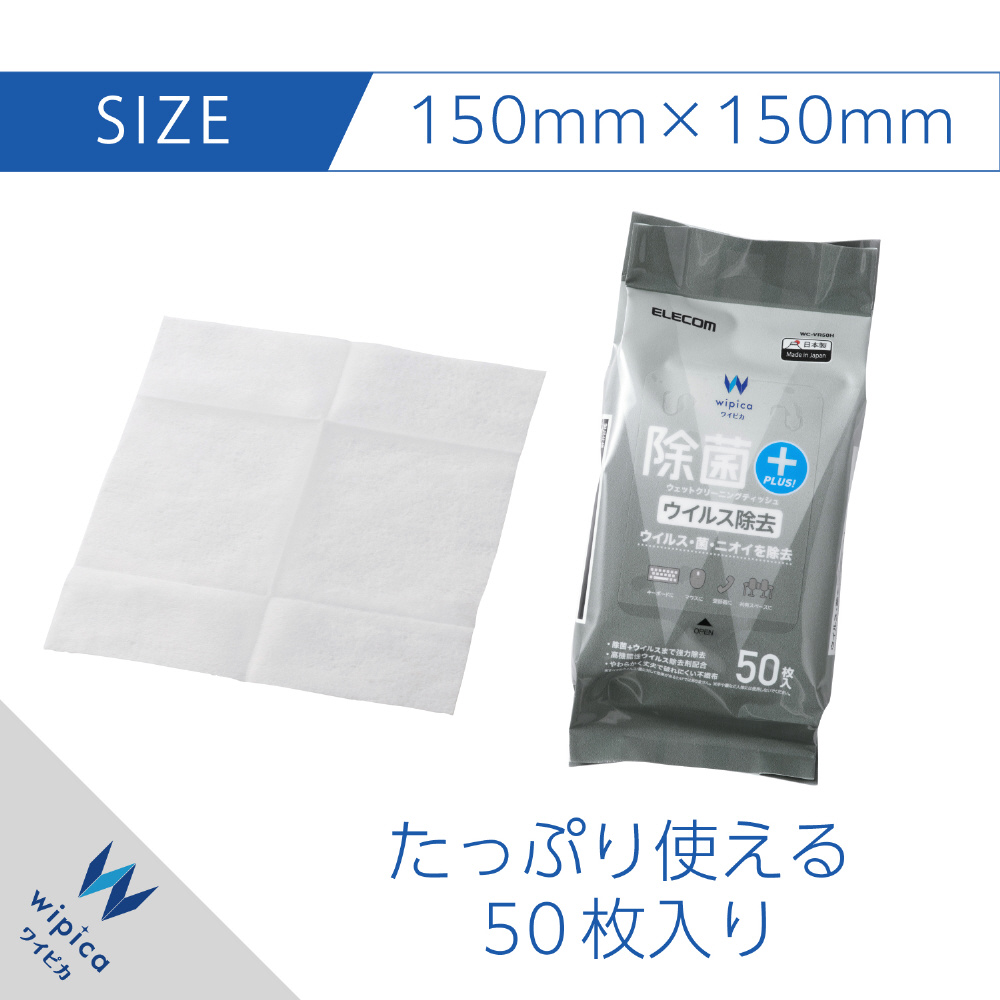 ウェットクリーニングティッシュ [150x150mm /50枚] 除菌・ウイルス除去 WC-VR50H