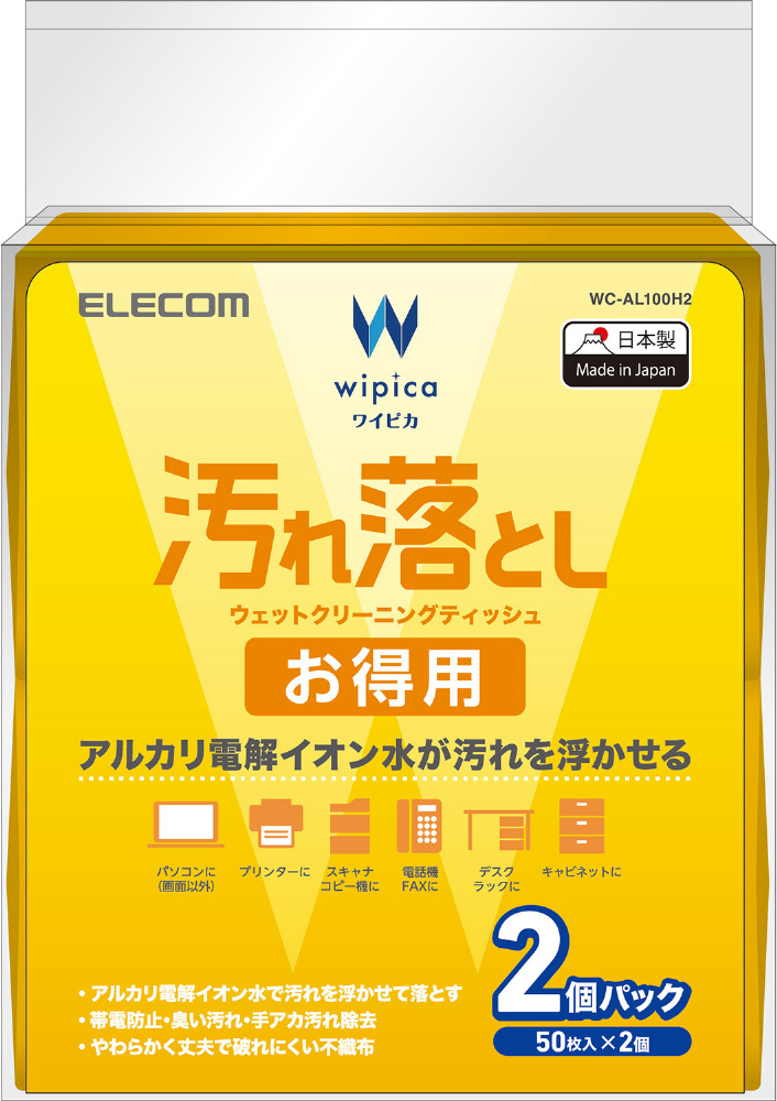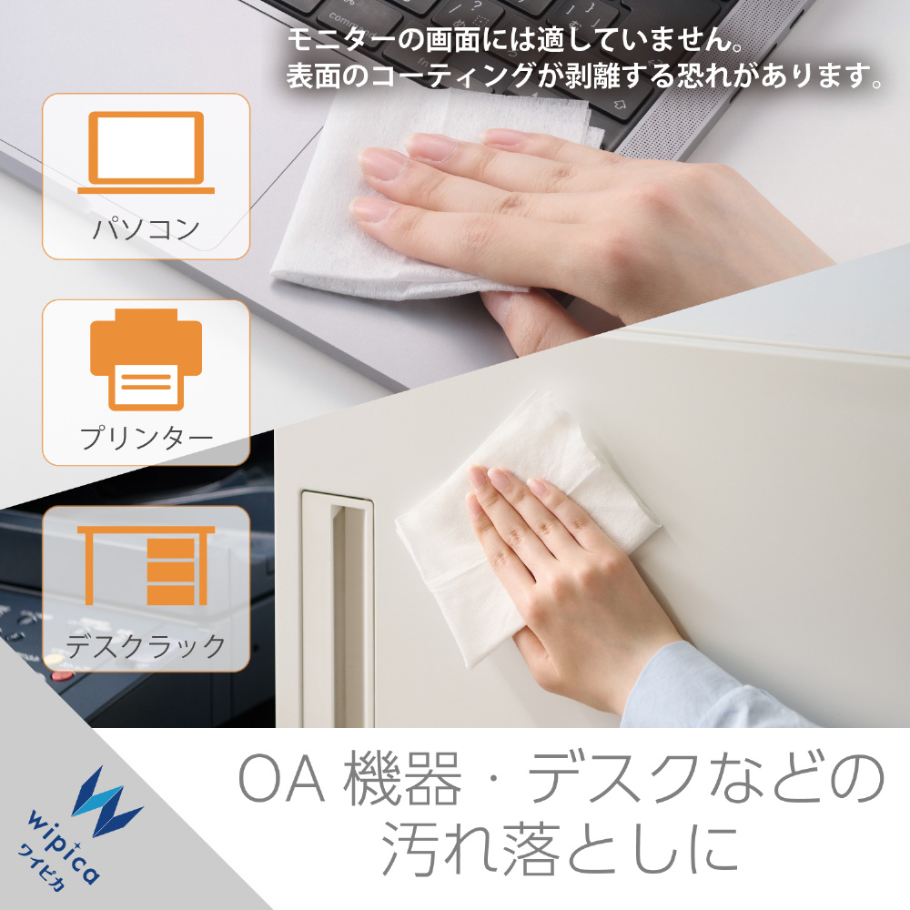 ※液晶などの画面には適していません。表面のコーティングが剥離する恐れがあります。液晶などの画面には液晶用ウェットクリーニングティッシュ(WC-DPシリーズ)、液晶用ドライクリーニングティッシュ(WC-DCシリーズ)などをご使用ください。