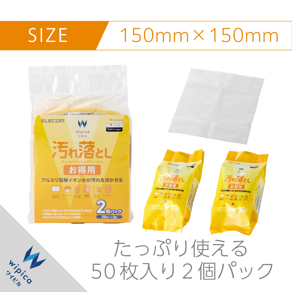 ウェットクリーニングティッシュ [150x150mm /50枚x2] 汚れ落としお徳用 WC-AL100H2