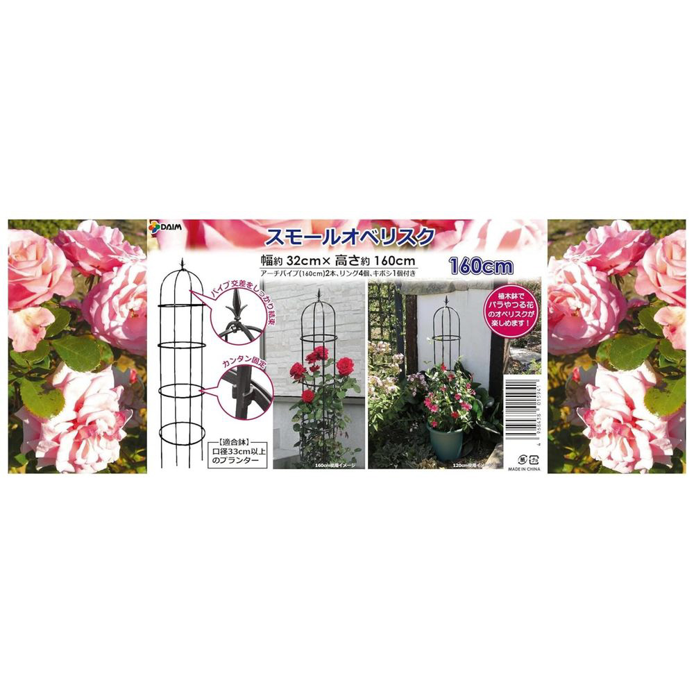 バラやツル性植物を美しく誘引できる、高さ160cmのスモールオベリスクです。