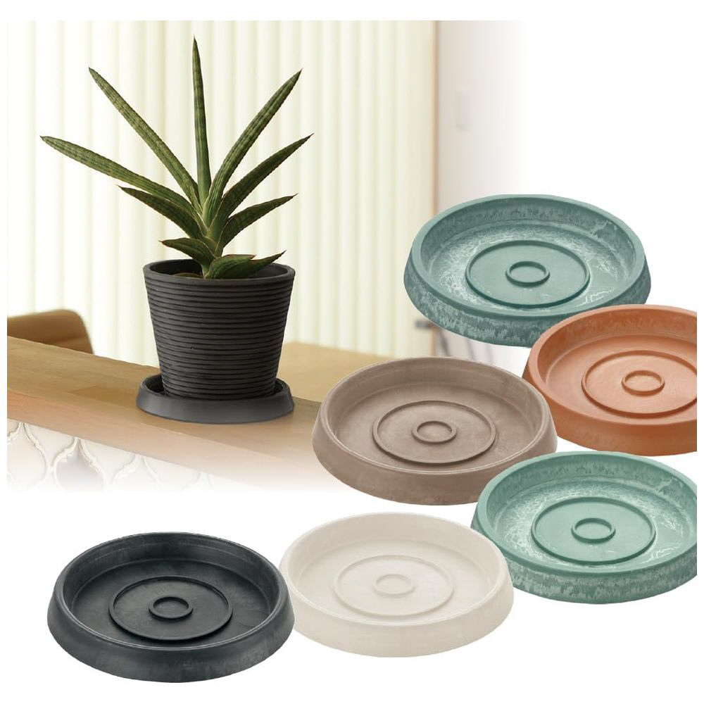 軽量で割れにくい、シンプルな丸型プランタープレート。自然素材配合のプラスチック製で、デザイン性も抜群です。