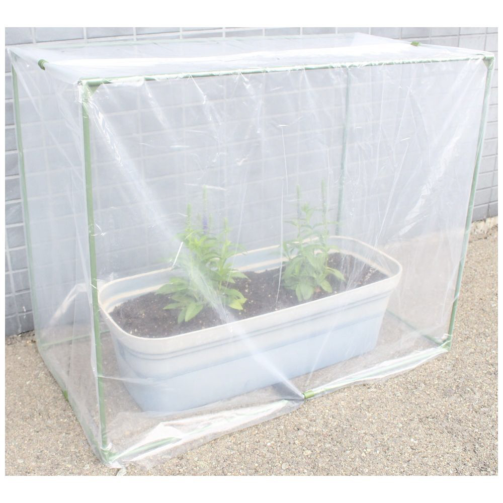 プランターに被せるだけで簡単に保温でき、パイプフレームと換気孔付きビニールで保温効果を高めます。