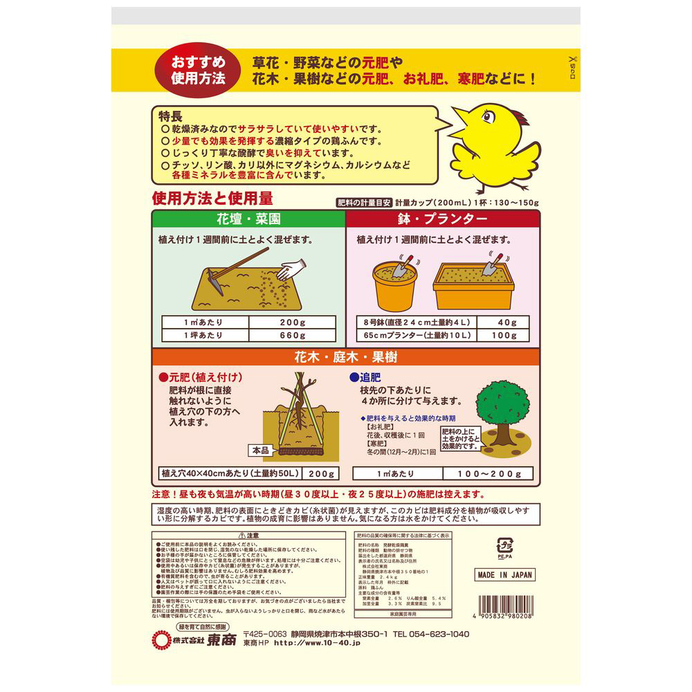 少量でも効果を発揮する濃縮タイプの鶏糞肥料です。
