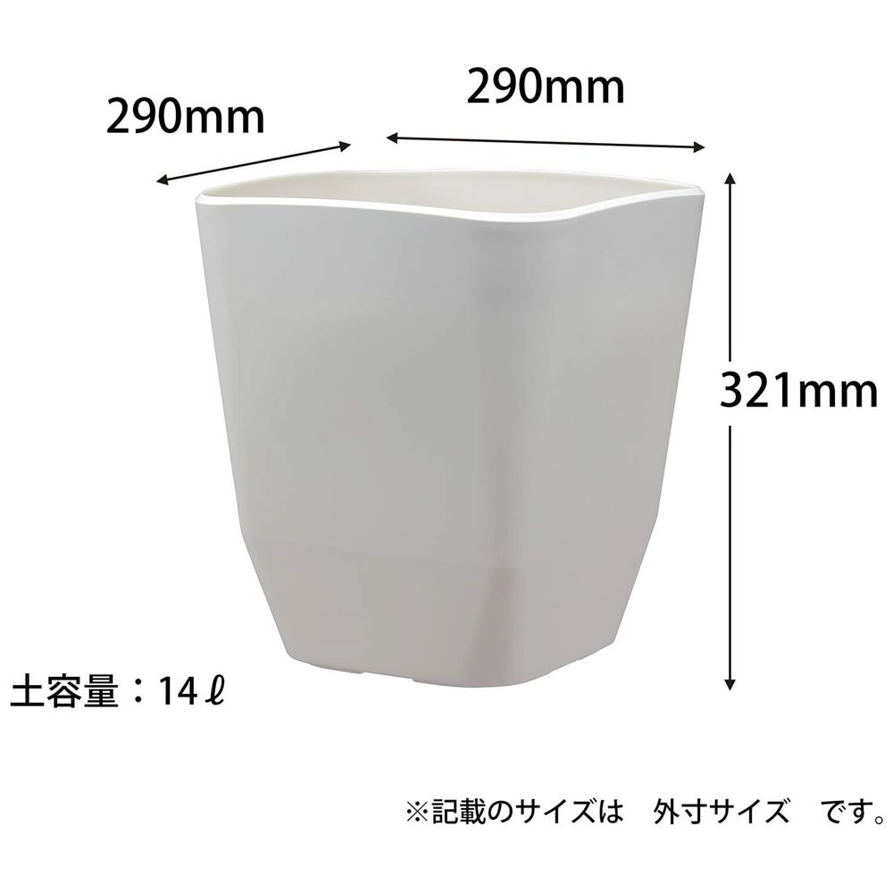 スタイリッシュなスクエア型植木鉢。8号鉢対応、14L容量。鉢カバーとしても使用可能。