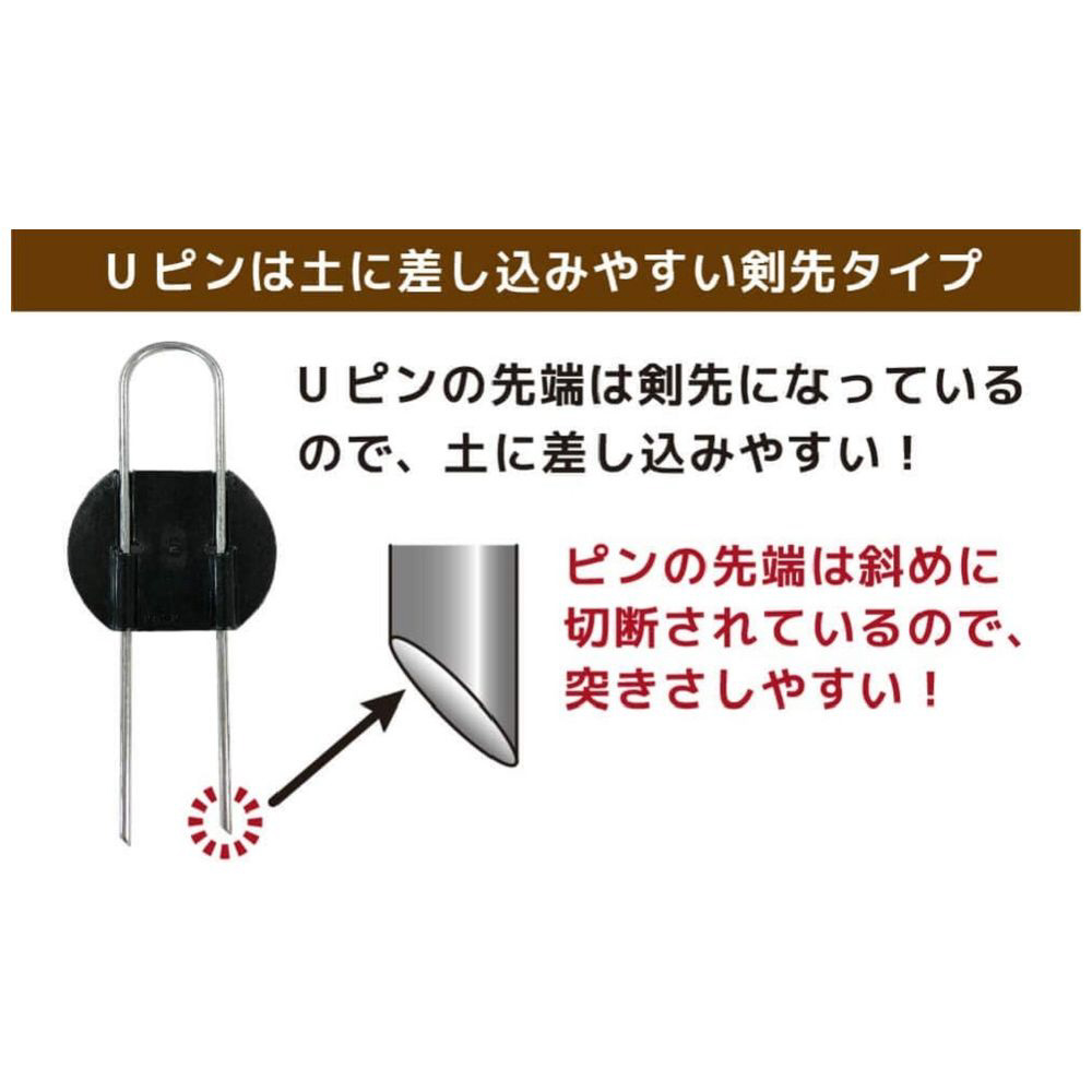 ピンの先端は土に差し込みやすい剣先形状で、押さえ板は紛失の心配もありません。