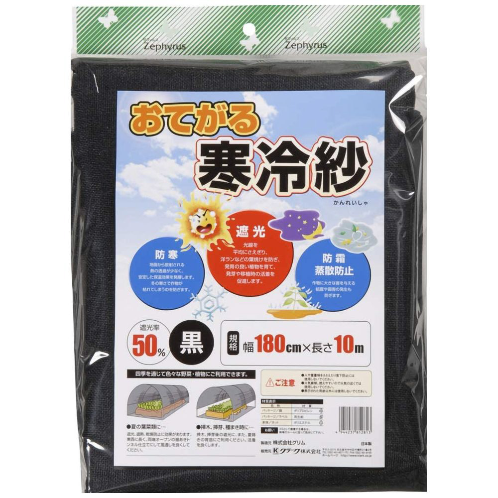 風、虫、鳥、霜、寒さから植物を守る寒冷紗(黒、1.8m×10m)。遮光率約50%。