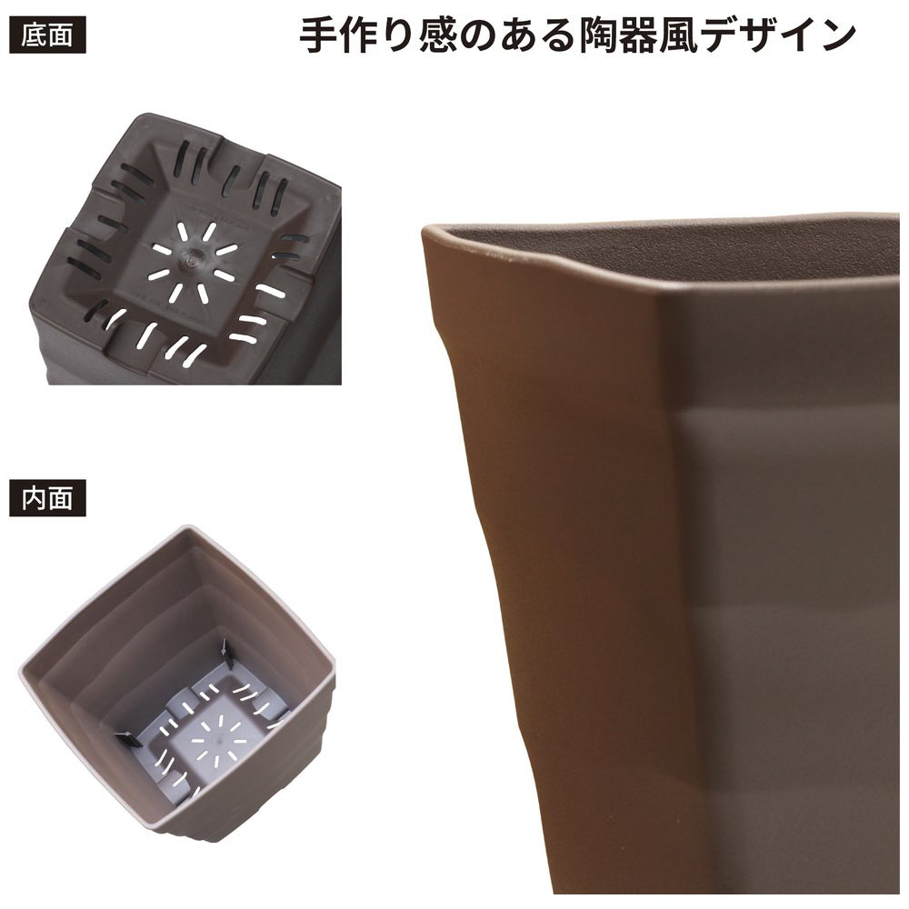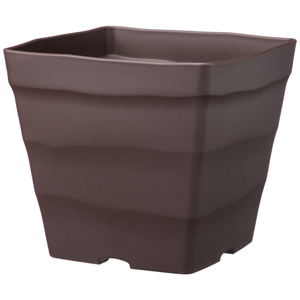 素焼き鉢のような質感のダークブラウンのスクエア型植木鉢です。