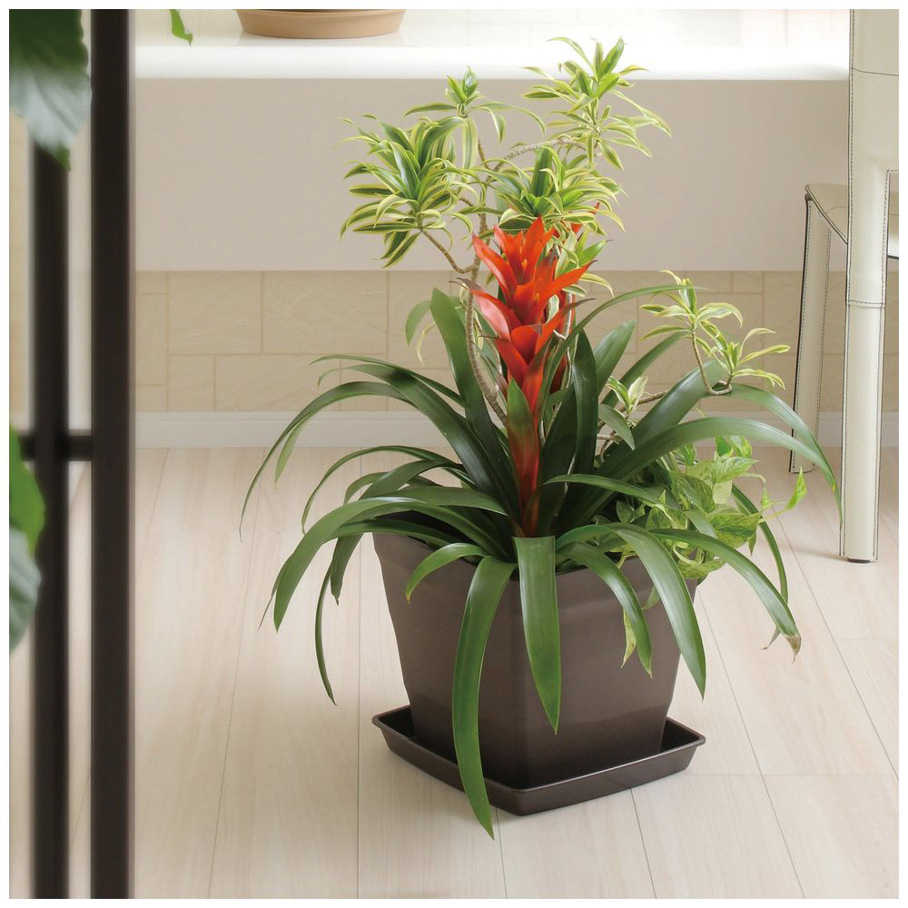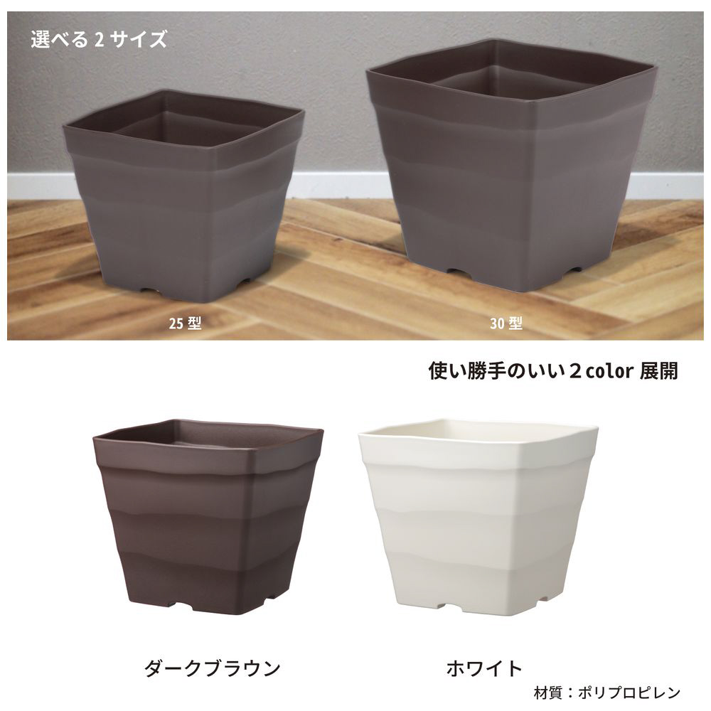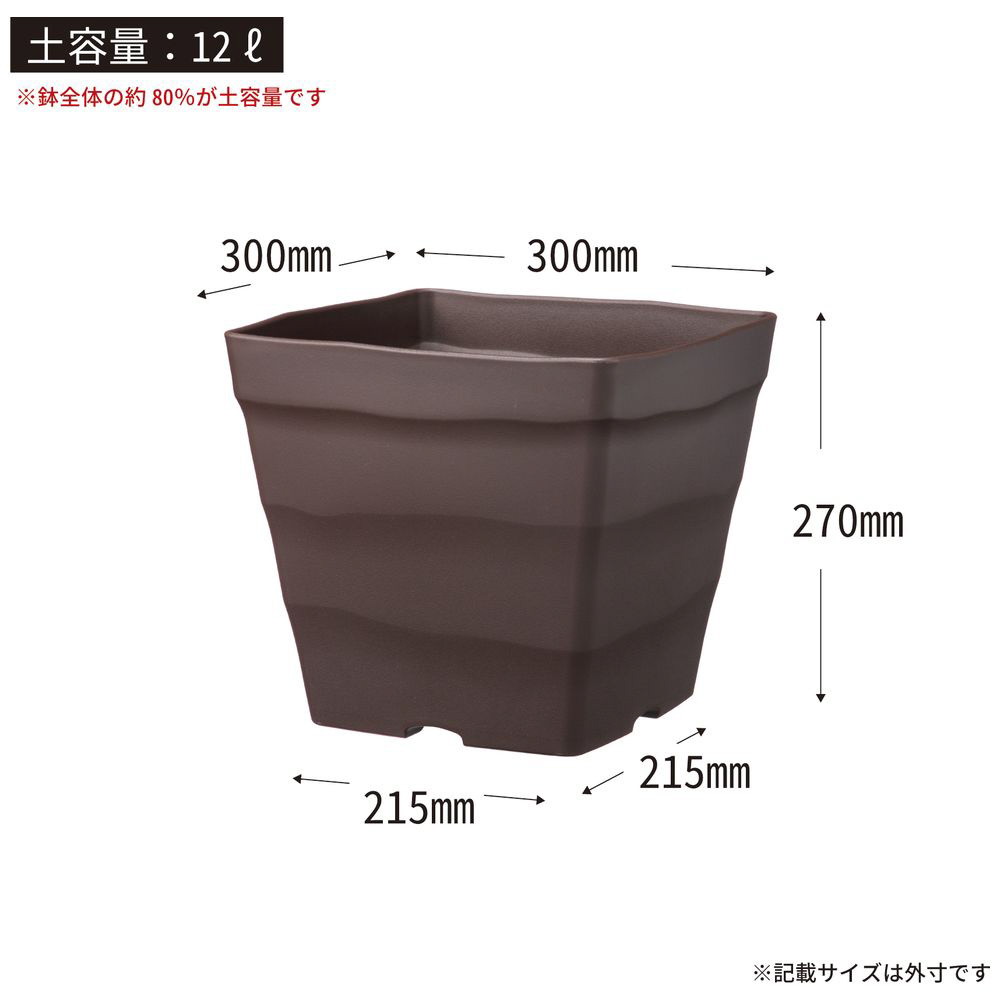 素焼き風質感のダークブラウンのスクエア型植木鉢(30型)ベランダや壁際に最適なミドルサイズで、低木や草花の寄せ植えに最適です。