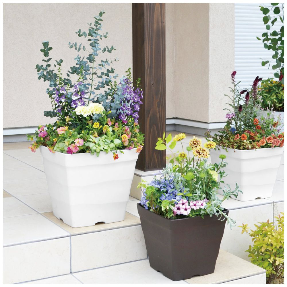 泥はね汚れが落ちやすい加工が施され、低木の植え付けや草花の寄せ植えにおすすめ。