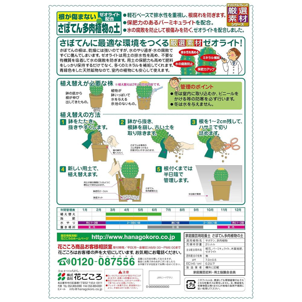 保肥力のあるバーミキュライトと、水の腐敗を防ぎ根の傷みを防ぐゼオライトを配合。