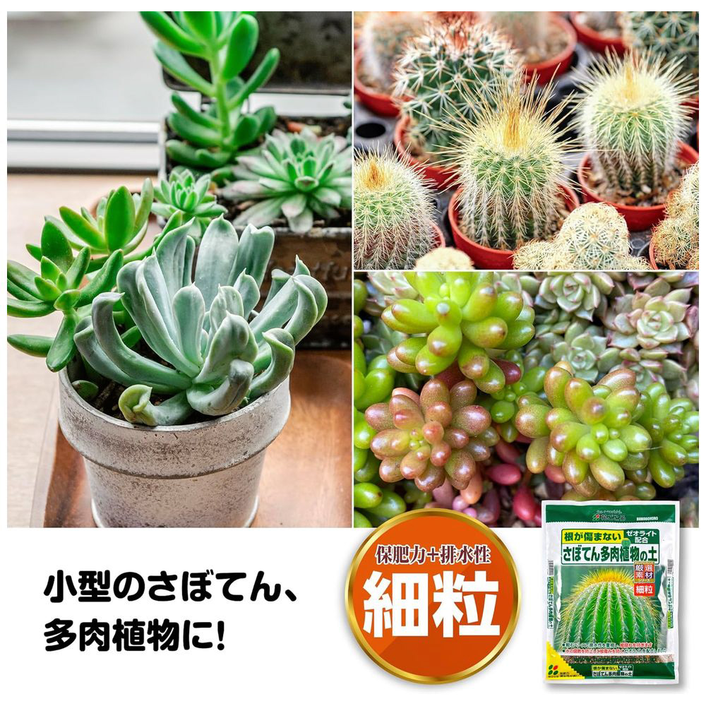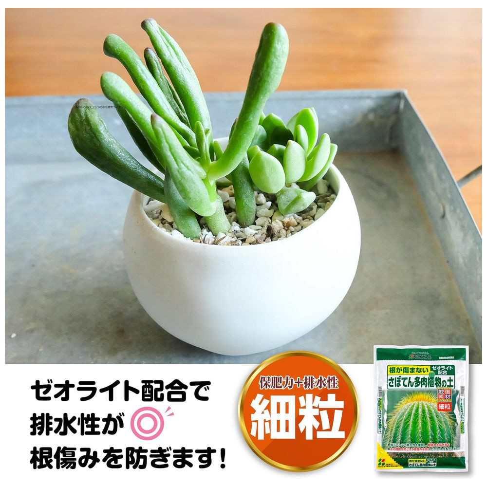 排水性抜群。根腐れを防ぐ多肉植物の土。ゼオライト配合で根の健康を保ちます。小鉢に最適な細粒タイプです。