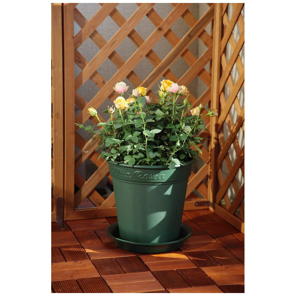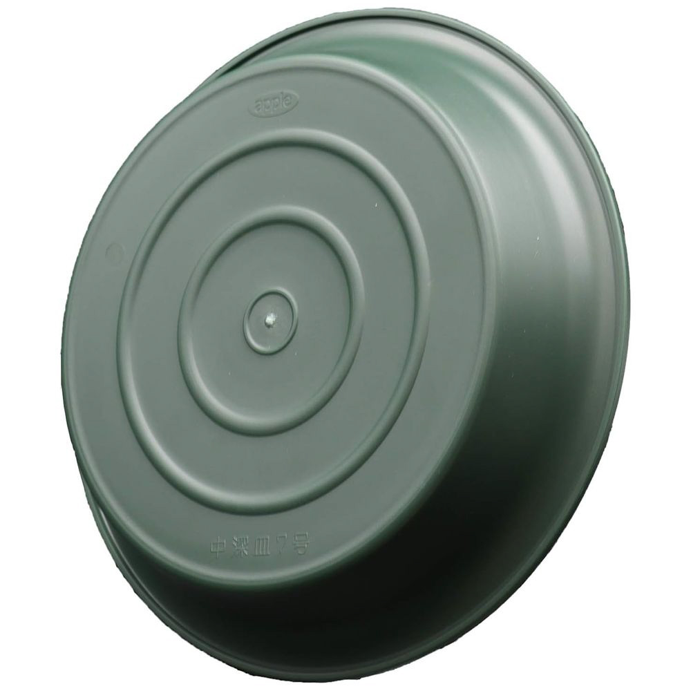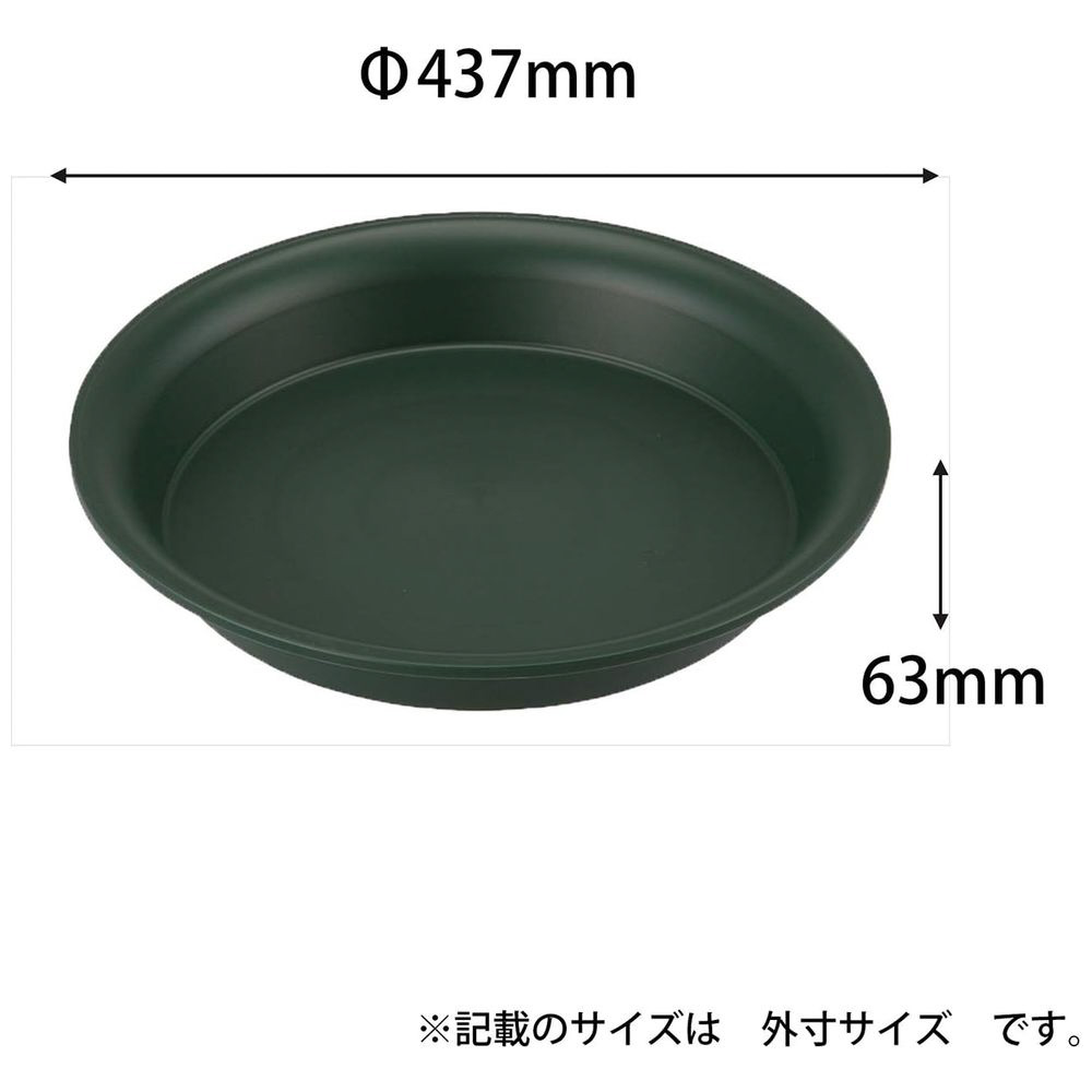 シンプルで使いやすいグリーンの鉢皿(450型)深めで安定感があり、スタッキングも可能です。
