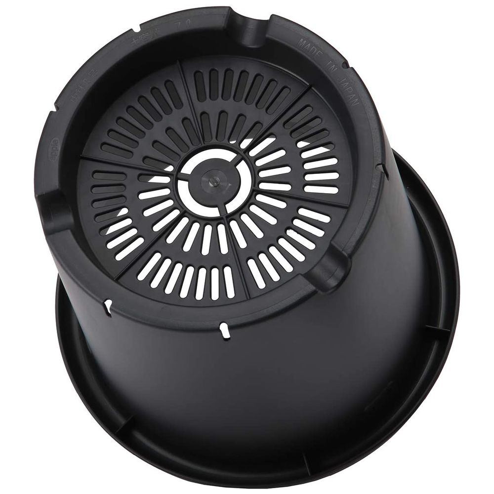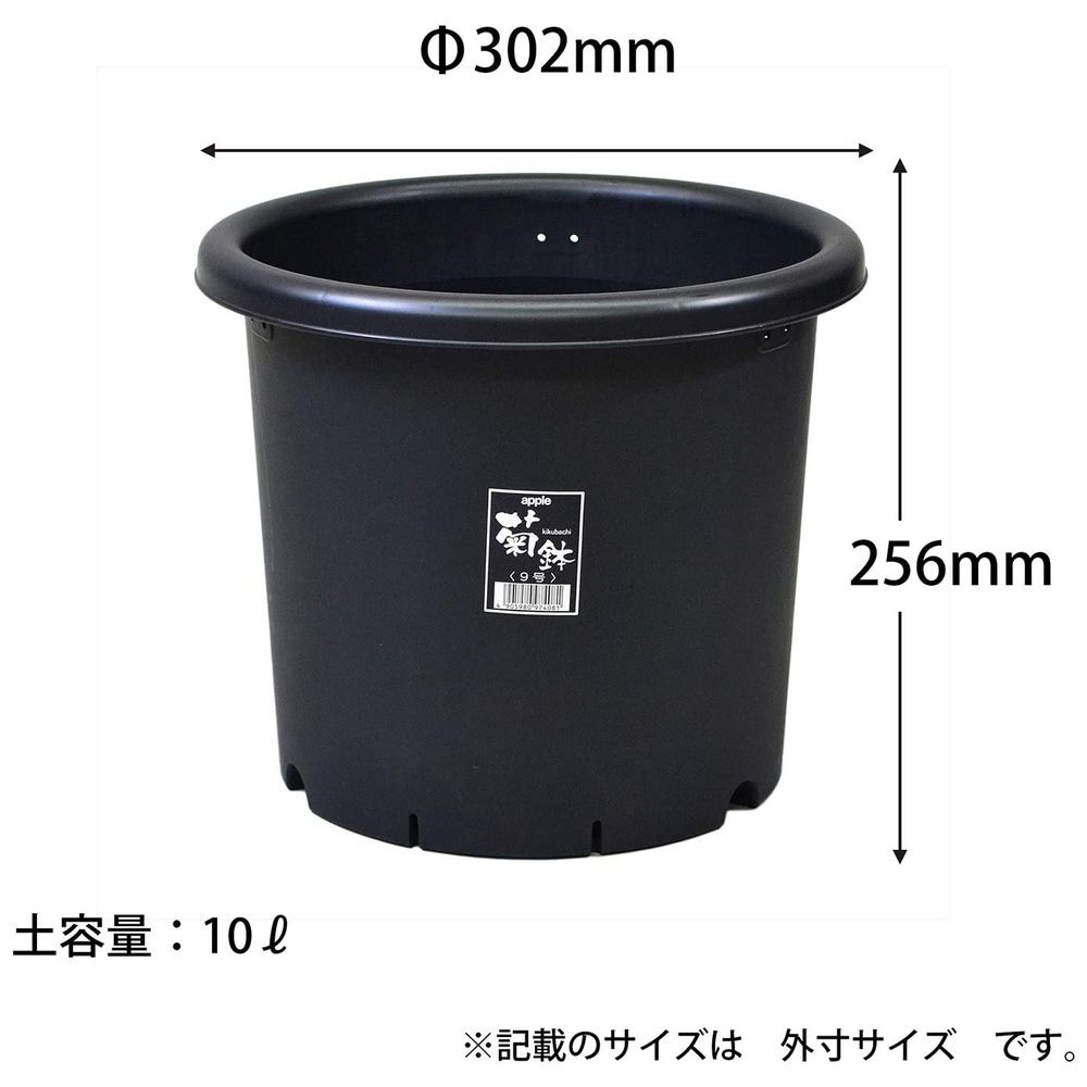 アップルウェアーの9号ブラック菊鉢。ポリプロピレン製でスタッキング可能。土容量10Lです。