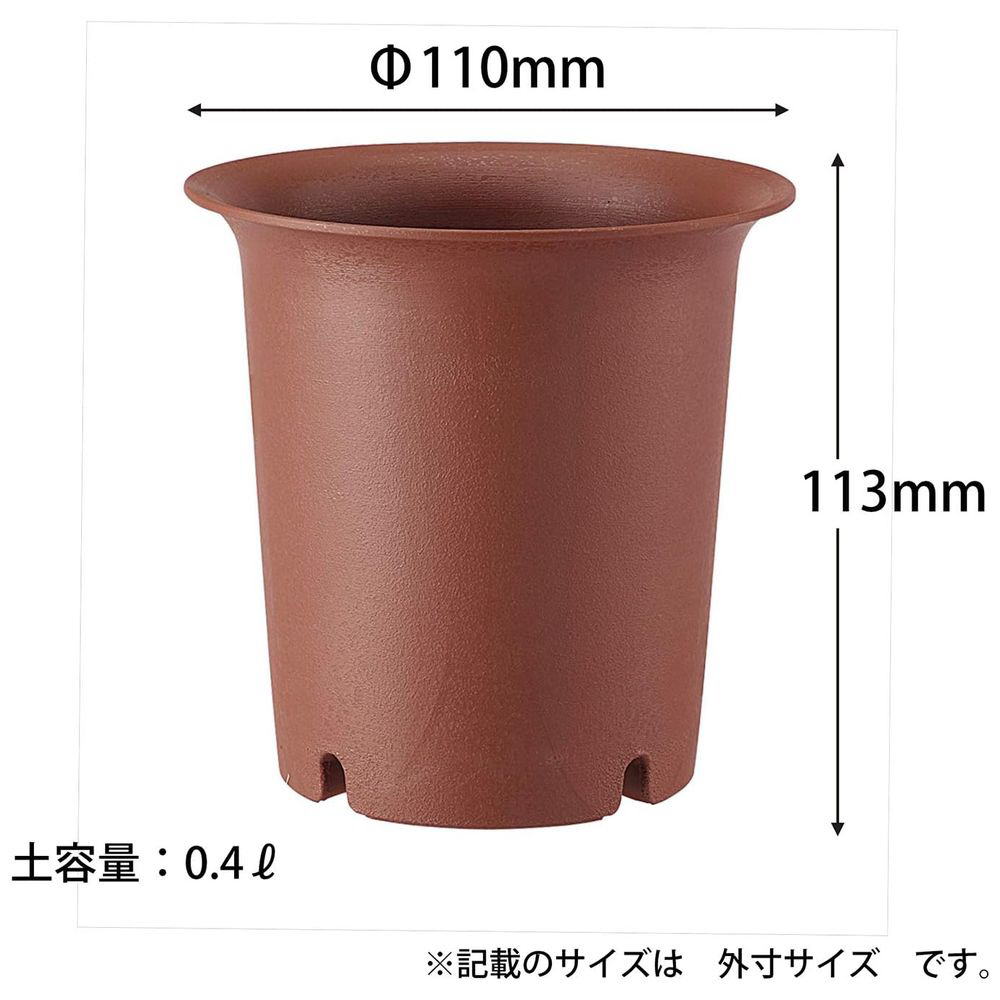 エビチャ色のポリプロピレン製で、スタッキングサイズ22mm、土容量0.4Lとコンパクトながらも使い勝手の良いサイズ感です。