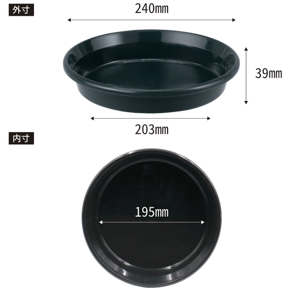 シンプルで使いやすい8号鉢用のブラック鉢皿。輪鉢F型、長鉢F型との併用で、床を汚れから守ります。