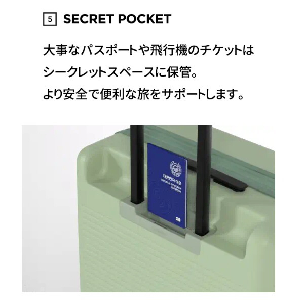 パスポートや財布など、すぐに取り出したいアイテムを収納するためのポケットをTTハンドルの下に搭載。