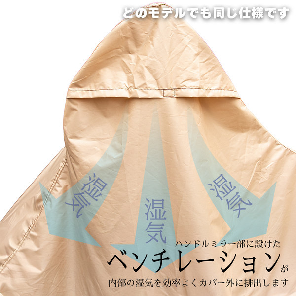 カバー前後の設けた大型ワイヤーロック対応の鍵穴・風飛び防止用のセンターベルト・ハンドル部に設けたエアベンチレーター