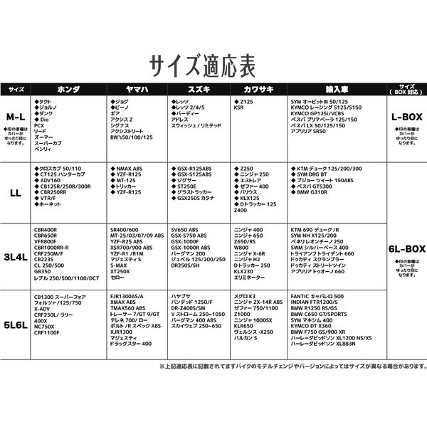 リアボックス(トップボックス)付の車両に対応しています