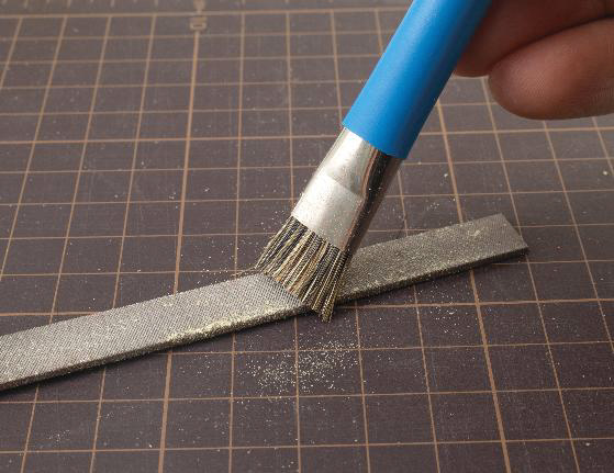 金属ヤスリの目に詰まった削りカスを掃き取るブラシ。