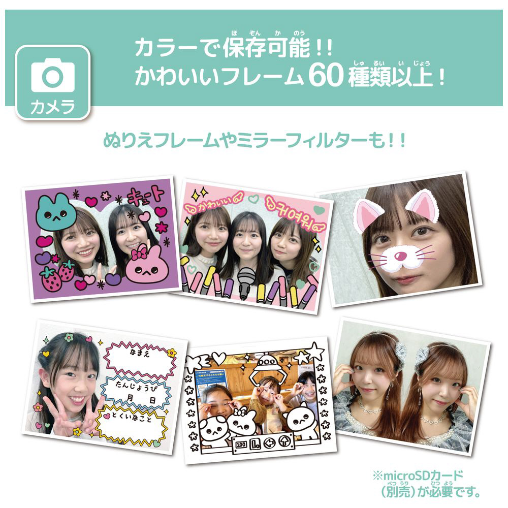 ・可愛い&おもしろフレーム60種類以上、ぬりえ、ミラーフィルター10種類以上で盛り沢山。