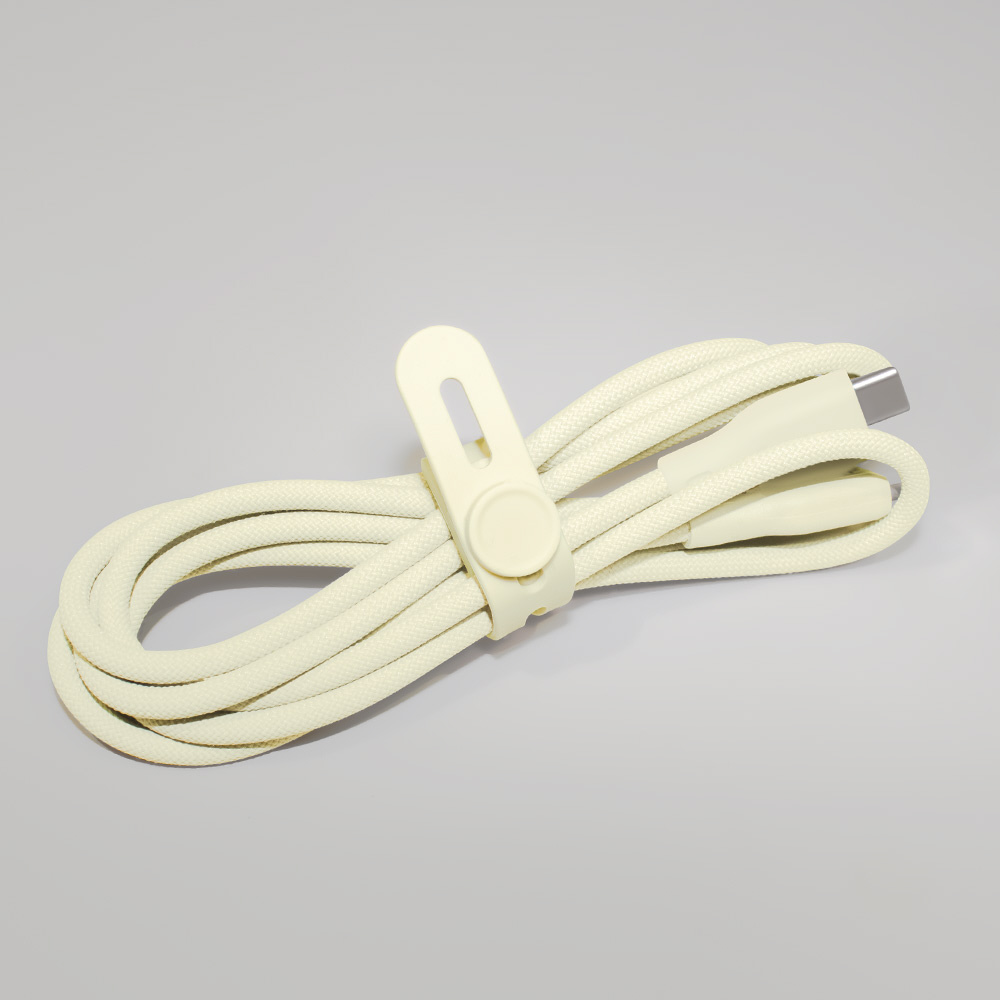 ケーブルの収納に使えるシリコンケーブルバンドが付属しています。