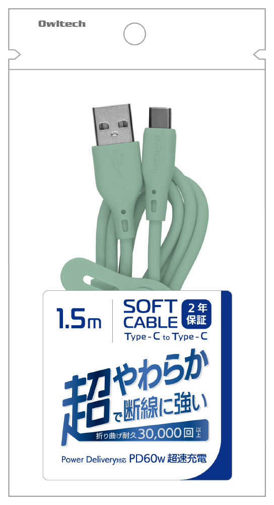 USB-C ⇔ USB-Cケーブル [充電 /転送 /1.5m /PD60W /USB2.0] セージグリーン OWL-CBSRCC15-SAG [USB-C ⇔ USB-C]
