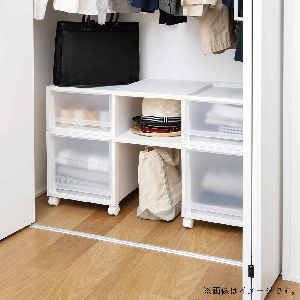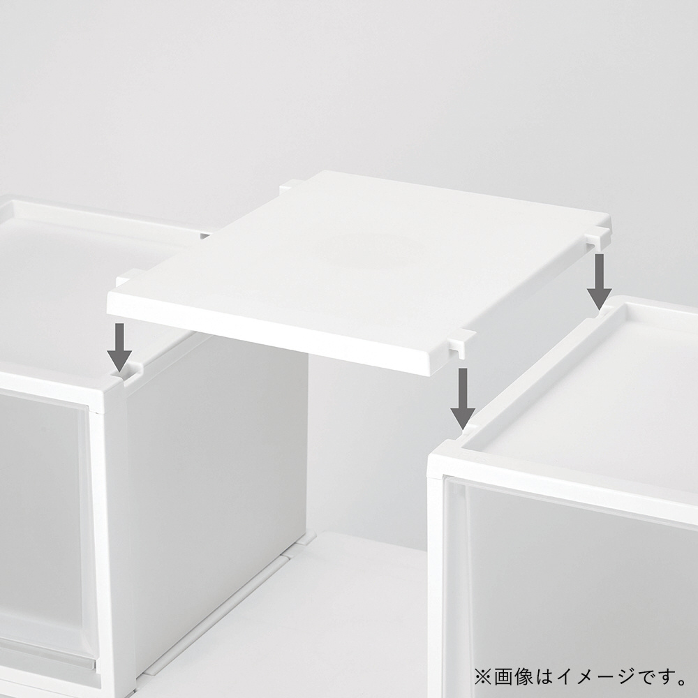 ケース同士をしっかり固定しながら、収納スペースをより有効に活用できるアイテム。上に物を置けるので収納力がアップし、整理整頓がしやすくなります。積み重ねたケースを安定させ、使い勝手を向上させる便利な収納アクセサリーです。デッドスペースの有効活用ができます。