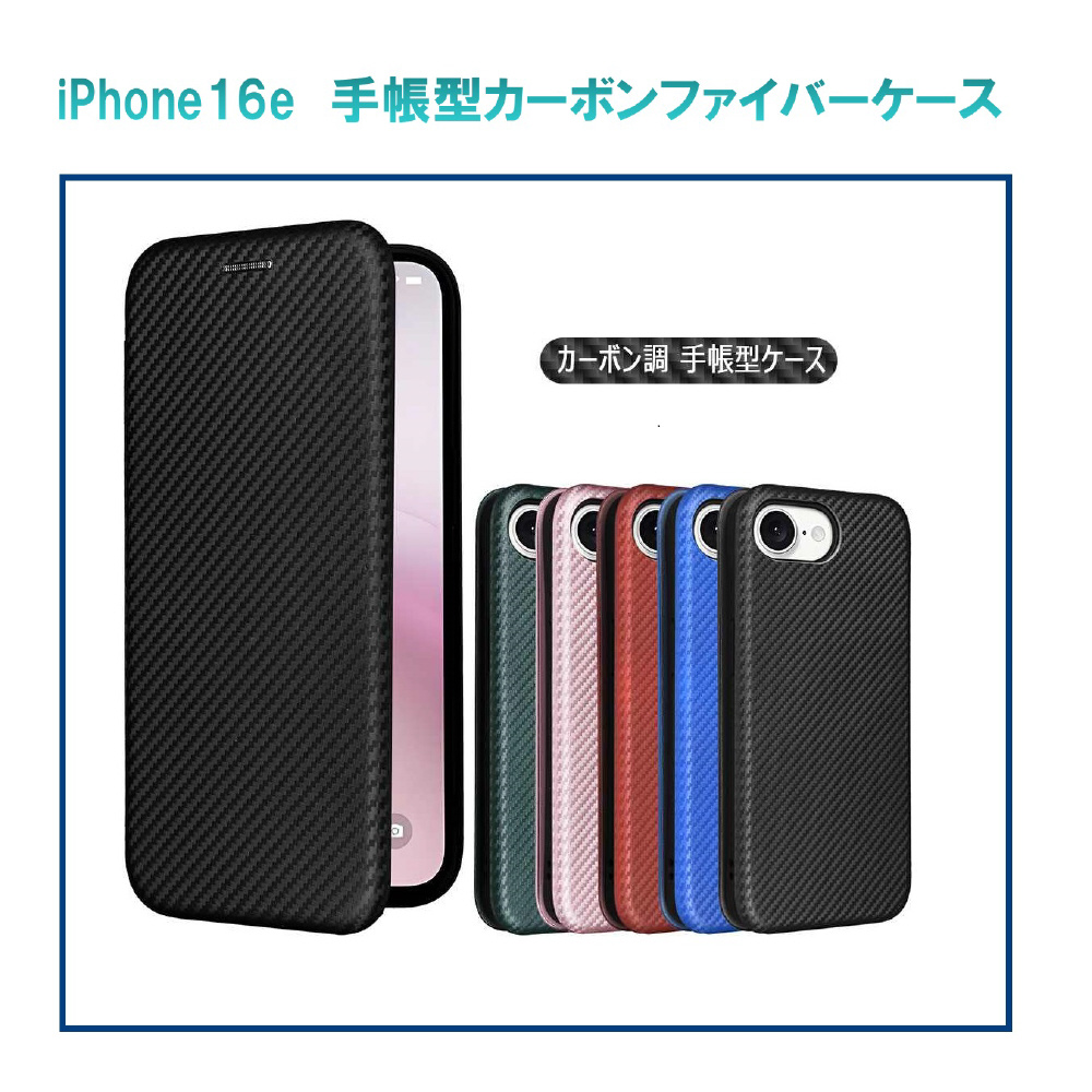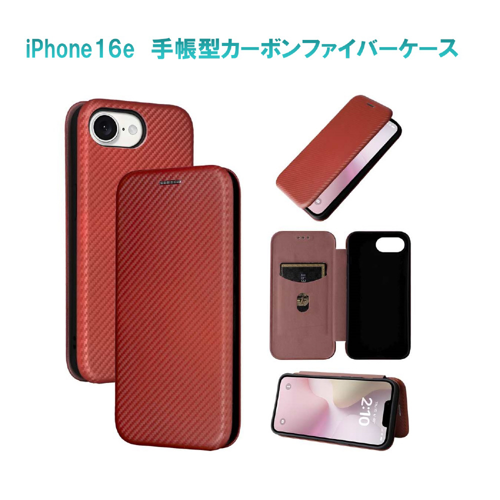 iPhone 16e カーボンファイバー手帳型ケース(レッド)