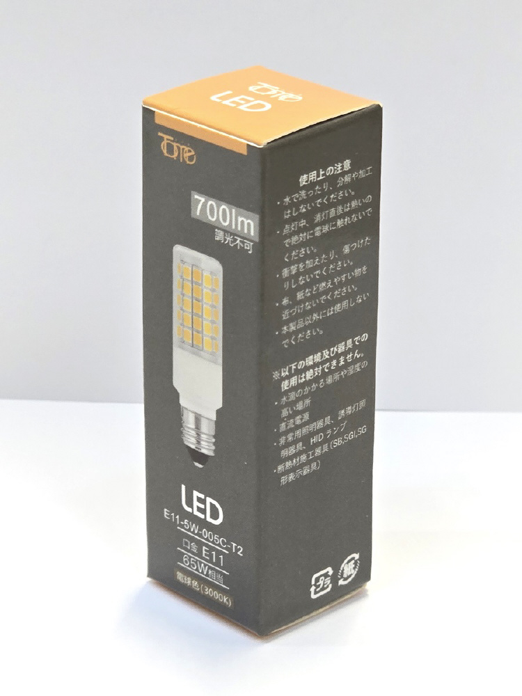 50W相当 T形 LED電球 口金:E11タイプ E11-5W-005C-T2 [E11 /T形 /50W相当 /電球色 /1個 /広配光タイプ]