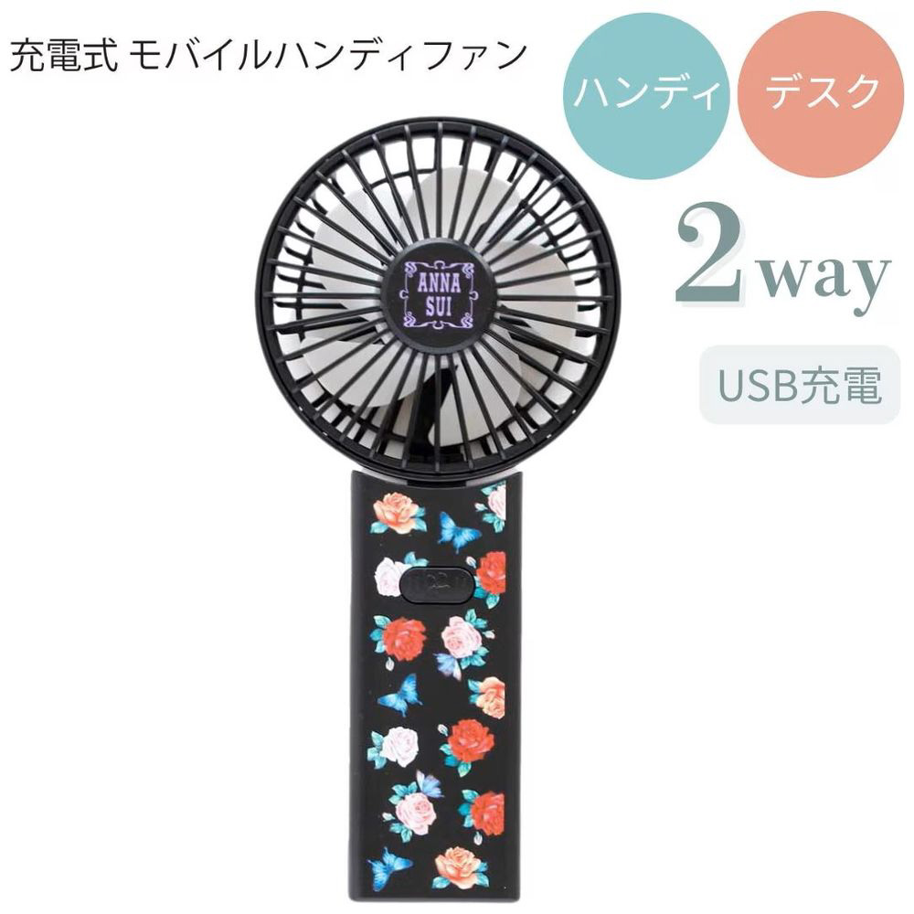 折り曲げて卓上に置くこともできるポータブルハンディファン。専用BOXにハンディファンと収納用の巾着をセットしました。ANNA SUIならではのインパクトのあるデザインが目を惹き、ギフトにもおすすめです。