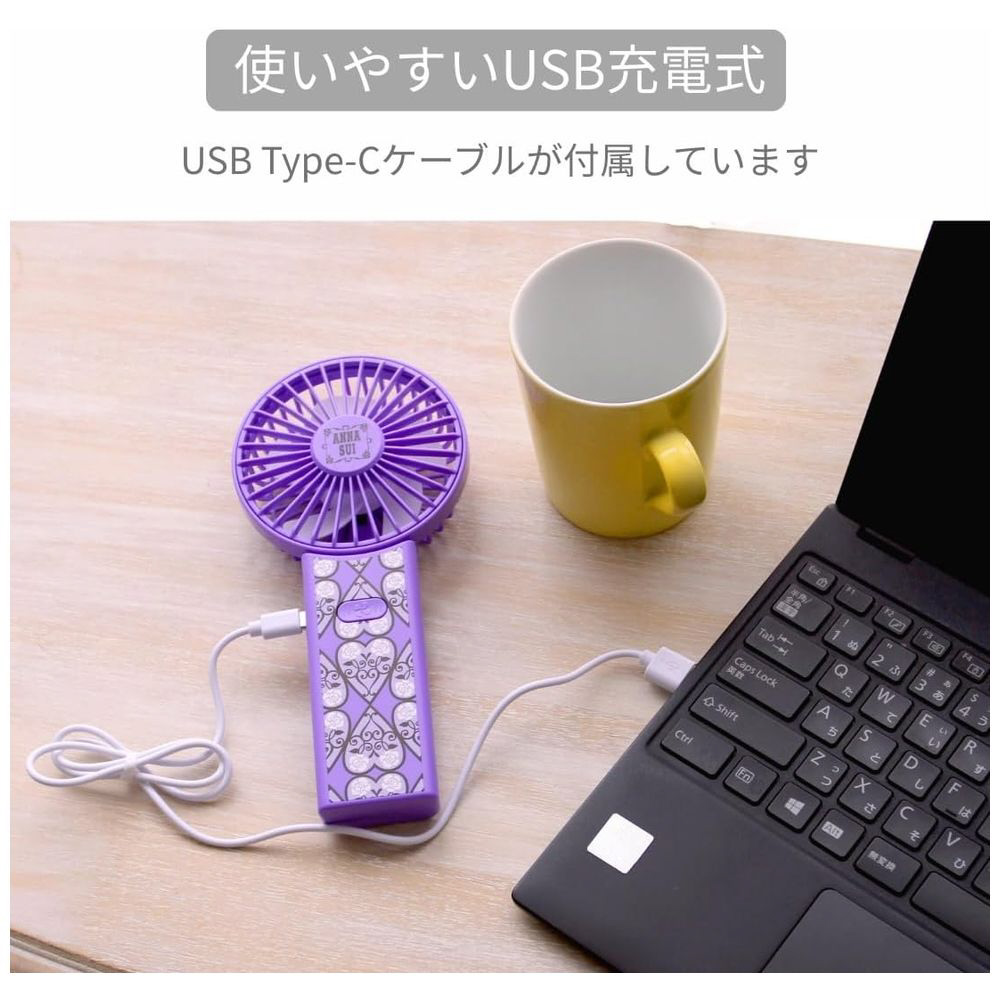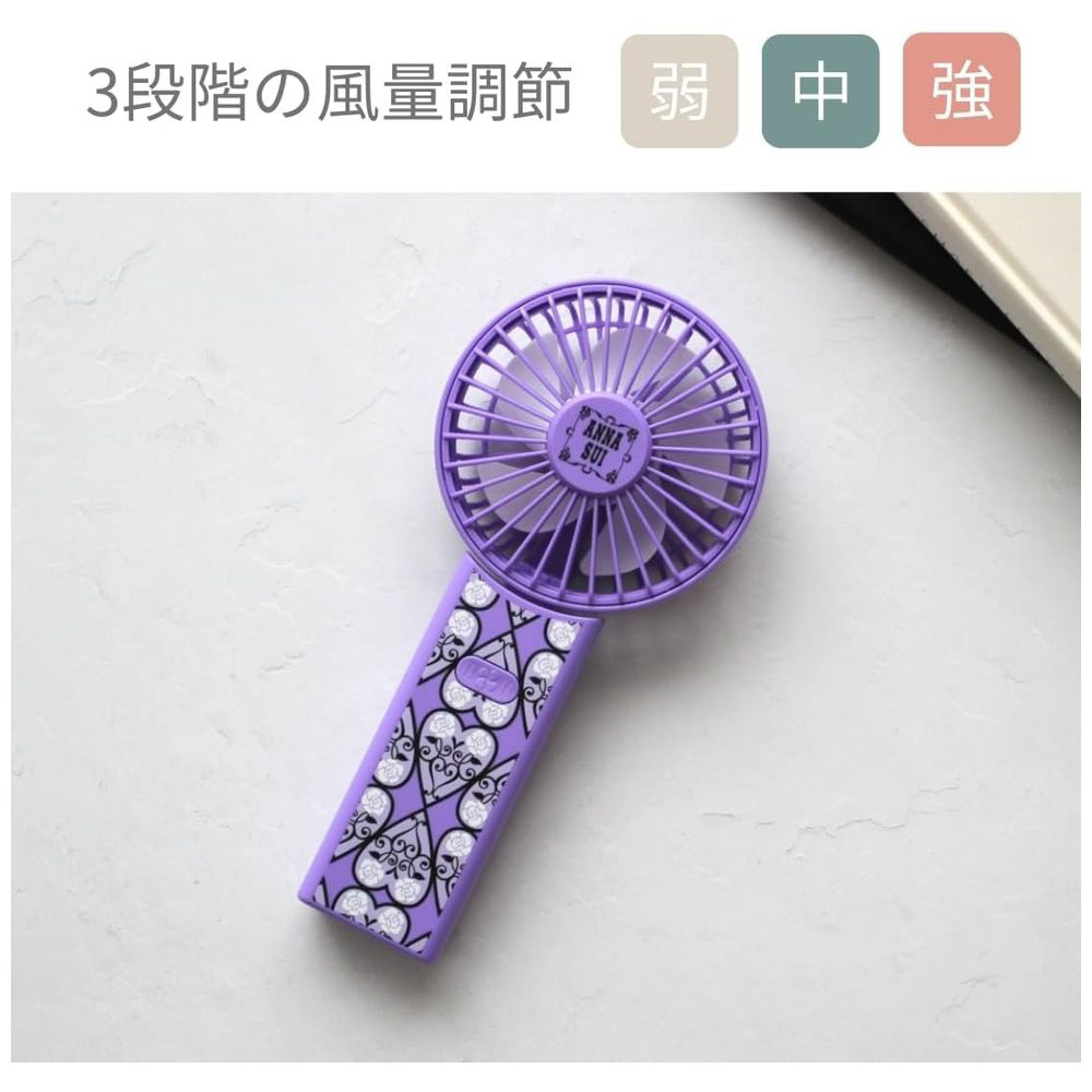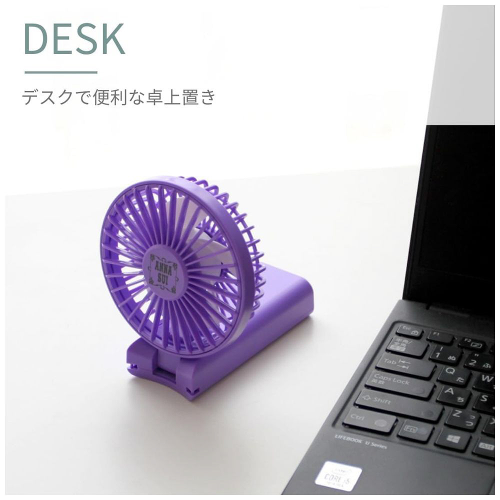 折り曲げて卓上に置くこともできるポータブルハンディファン。専用BOXにハンディファンと収納用の巾着をセットしました。ANNA SUIならではのインパクトのあるデザインが目を惹き、ギフトにもおすすめです。