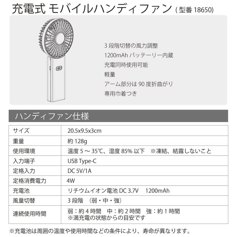 ハンディファン:高さ約20.5cm 幅約9.5cm 奥行き約3cm