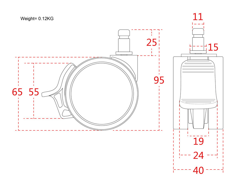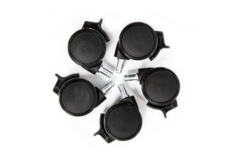 AKRacingチェア用の交換用キャスターです。フローリングの床に傷のつきにくいPU(ポリウレタン)製の双輪キャスターです。キャスターを固定するロック機能つき。