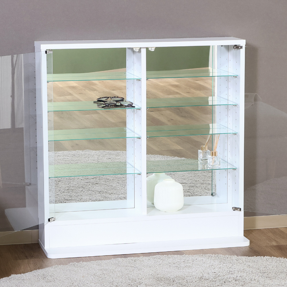スリムだけど大容量のロータイプガラスコレクションケース ミラー付き