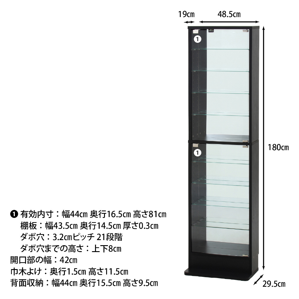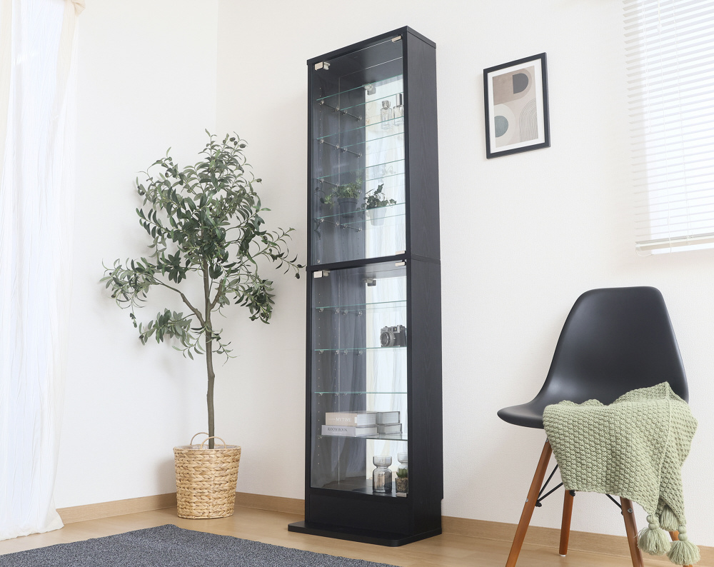 スリムだけど大容量のハイタイプガラスコレクションケース ミラー付き