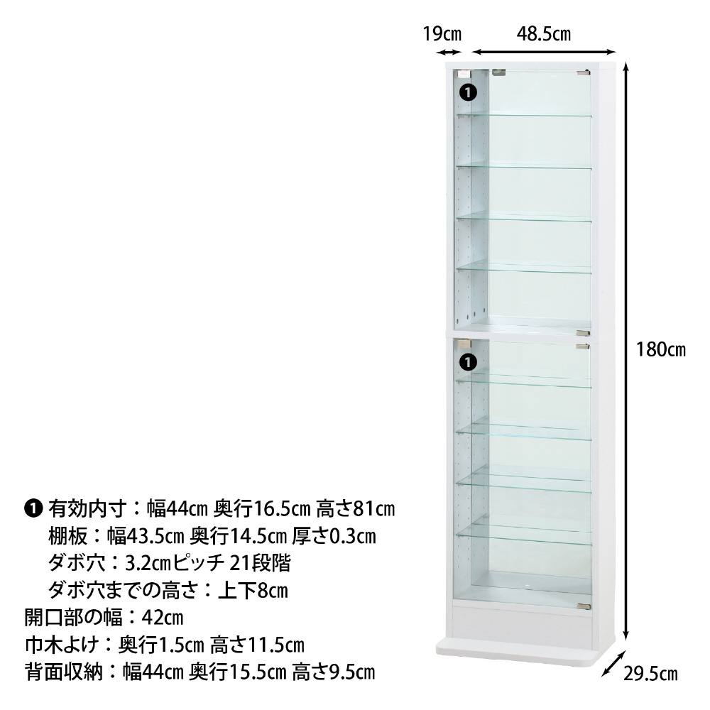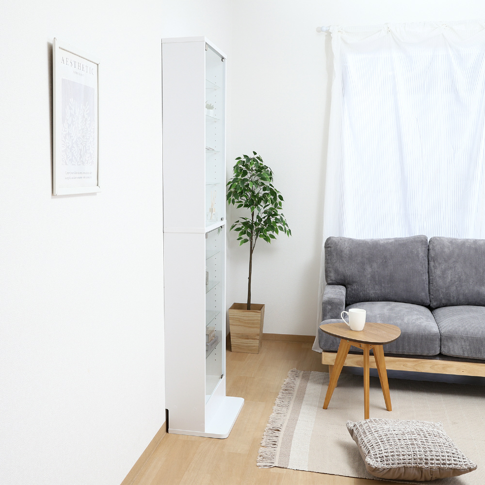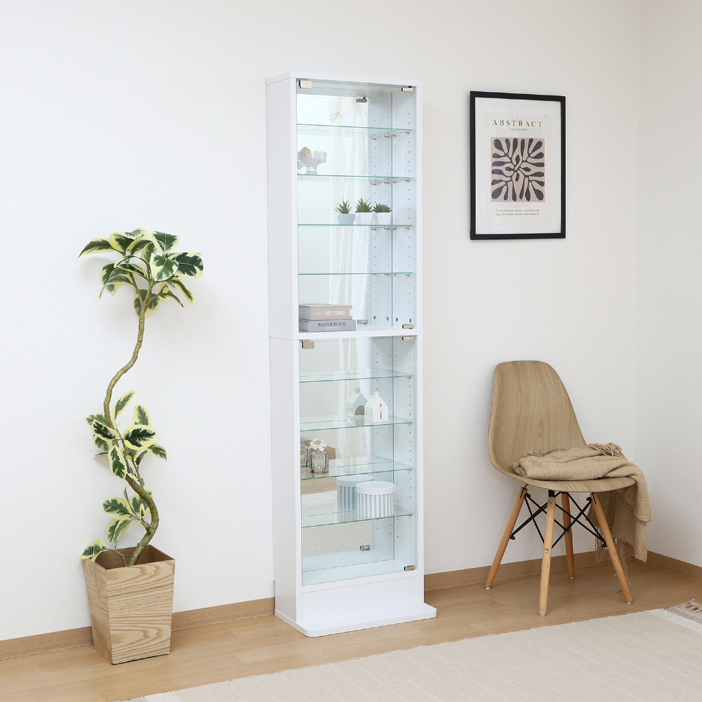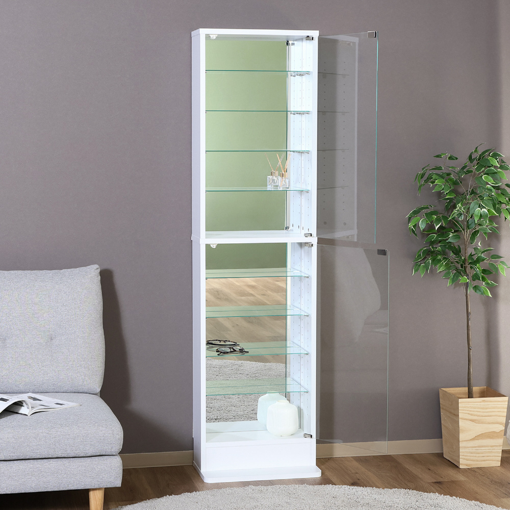 スリムだけど大容量のハイタイプガラスコレクションケース ミラー付き
